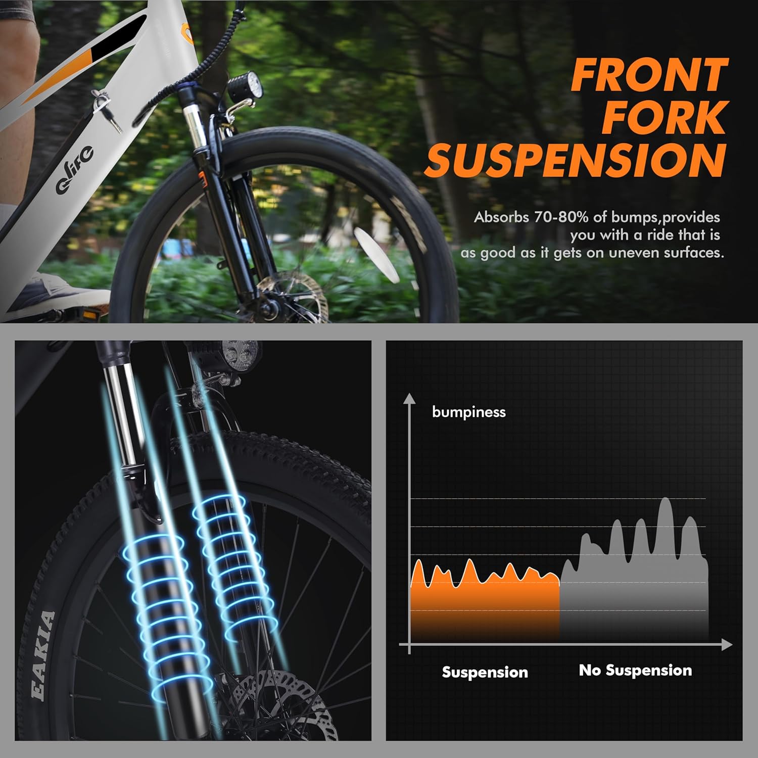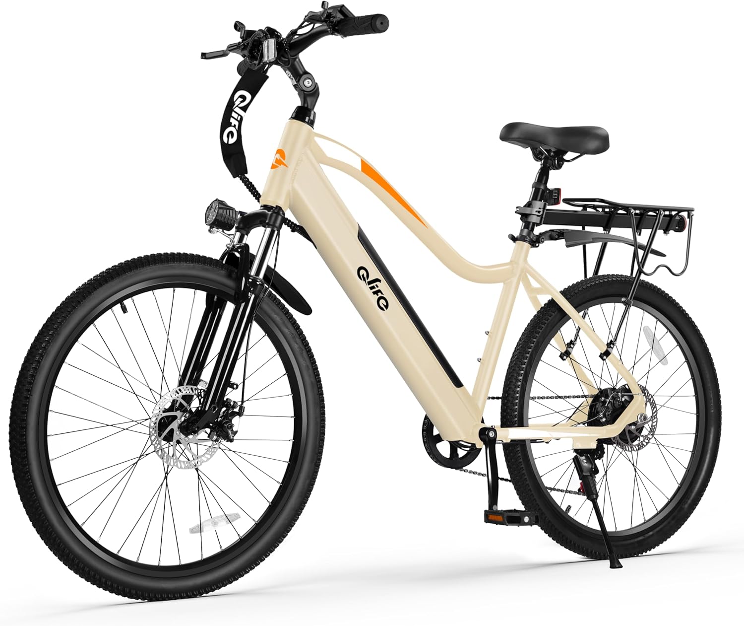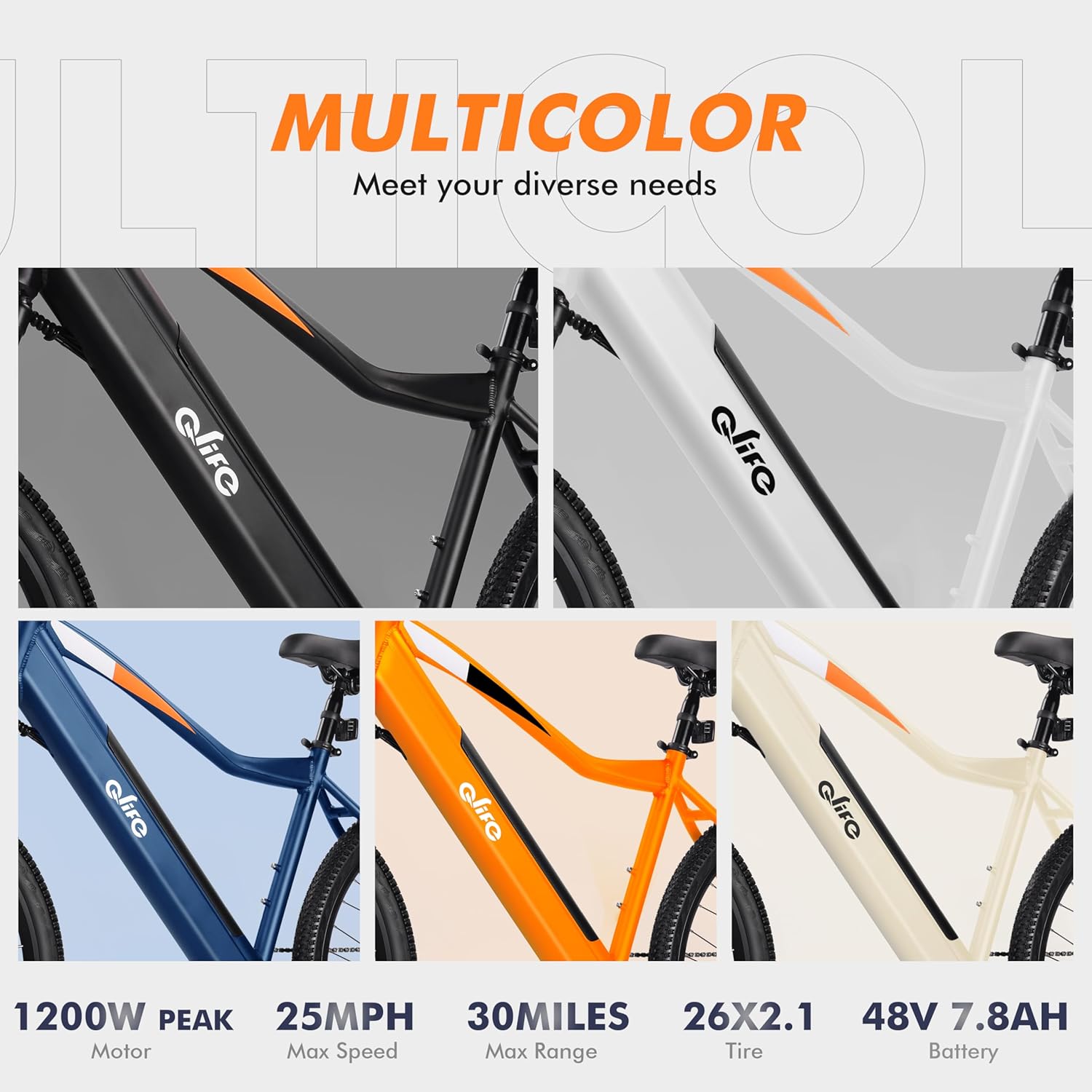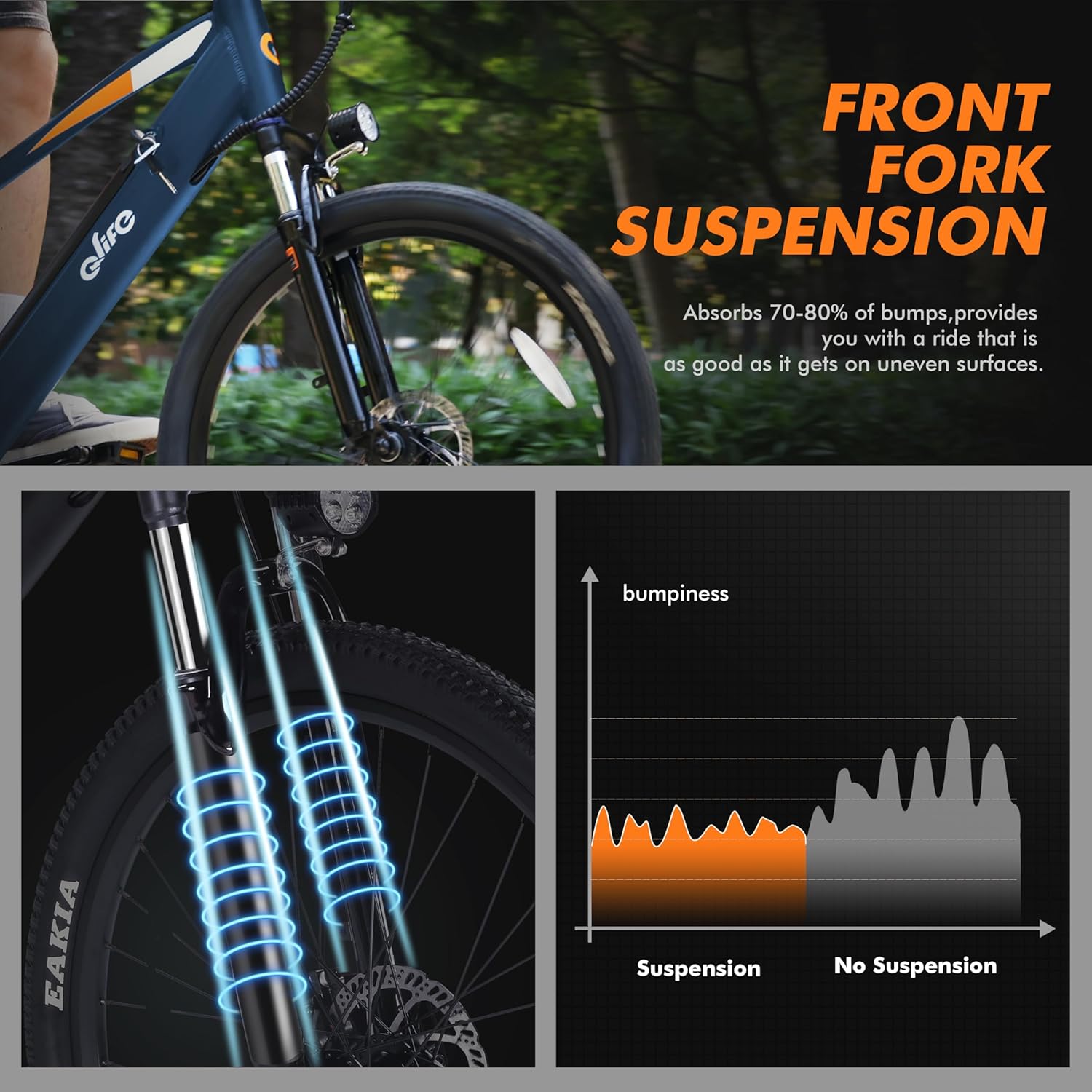 Qlife Electric Bike for Adults, 25MPH Mountain Ebike Bicycles Peak 1200W 7-Speed, 26"x2.1"Tire, 374.4Wh Removable Battery, Up to 40 Miles, Front Suspension, Cityone 48V