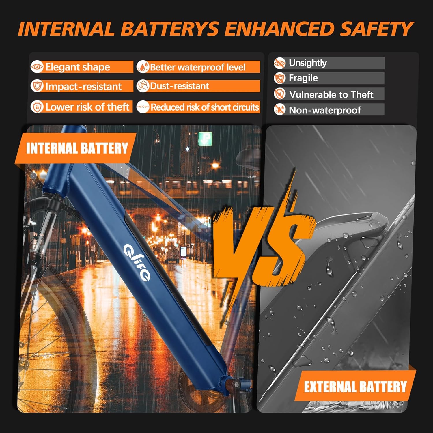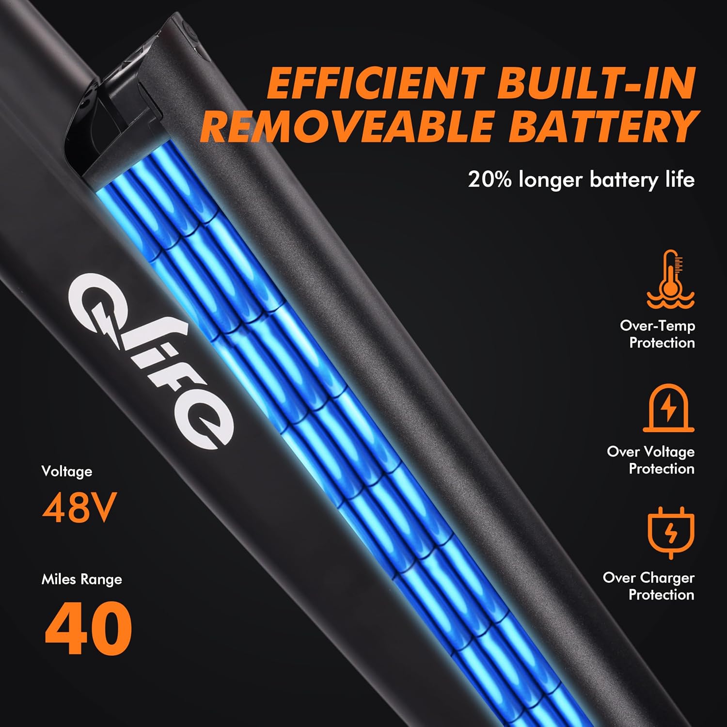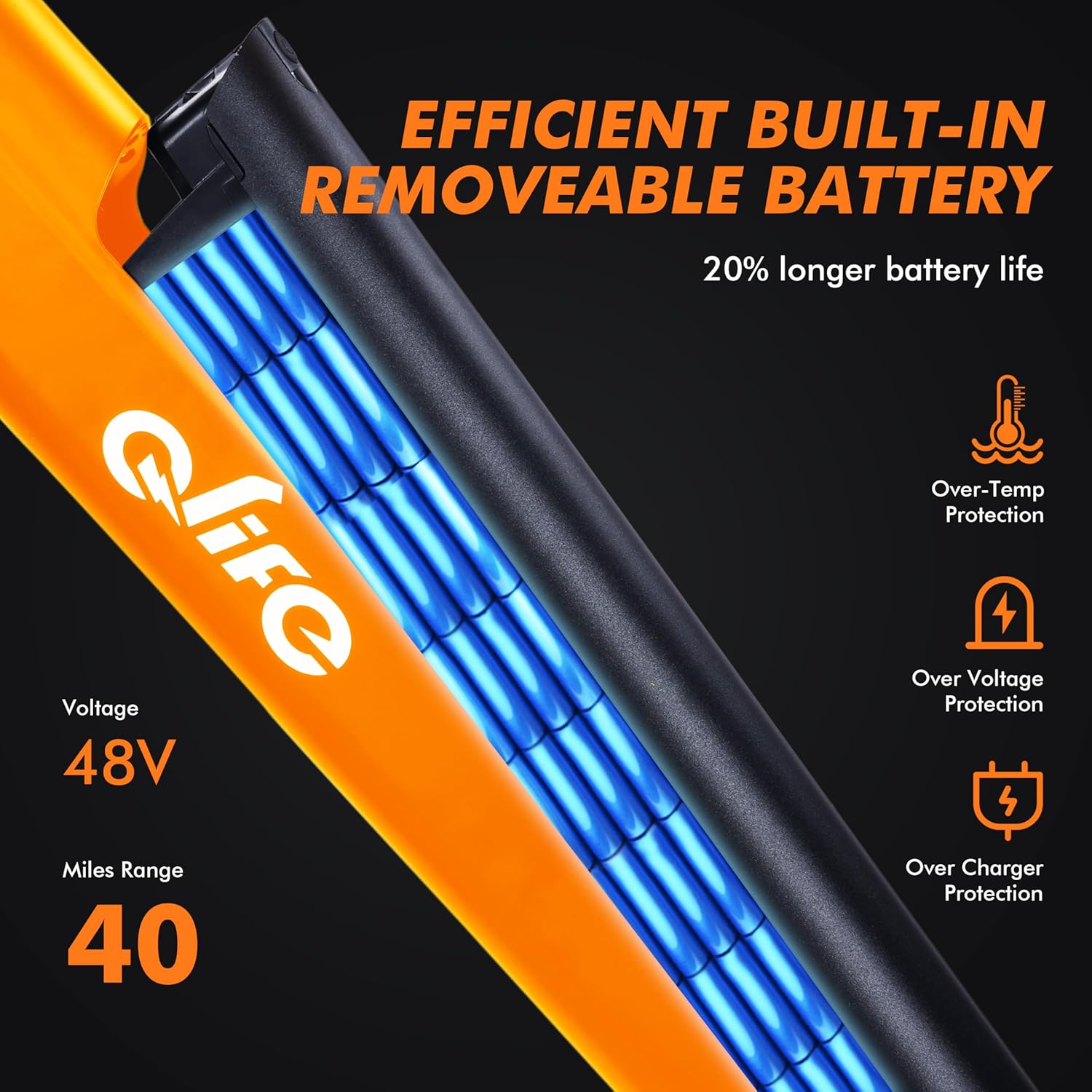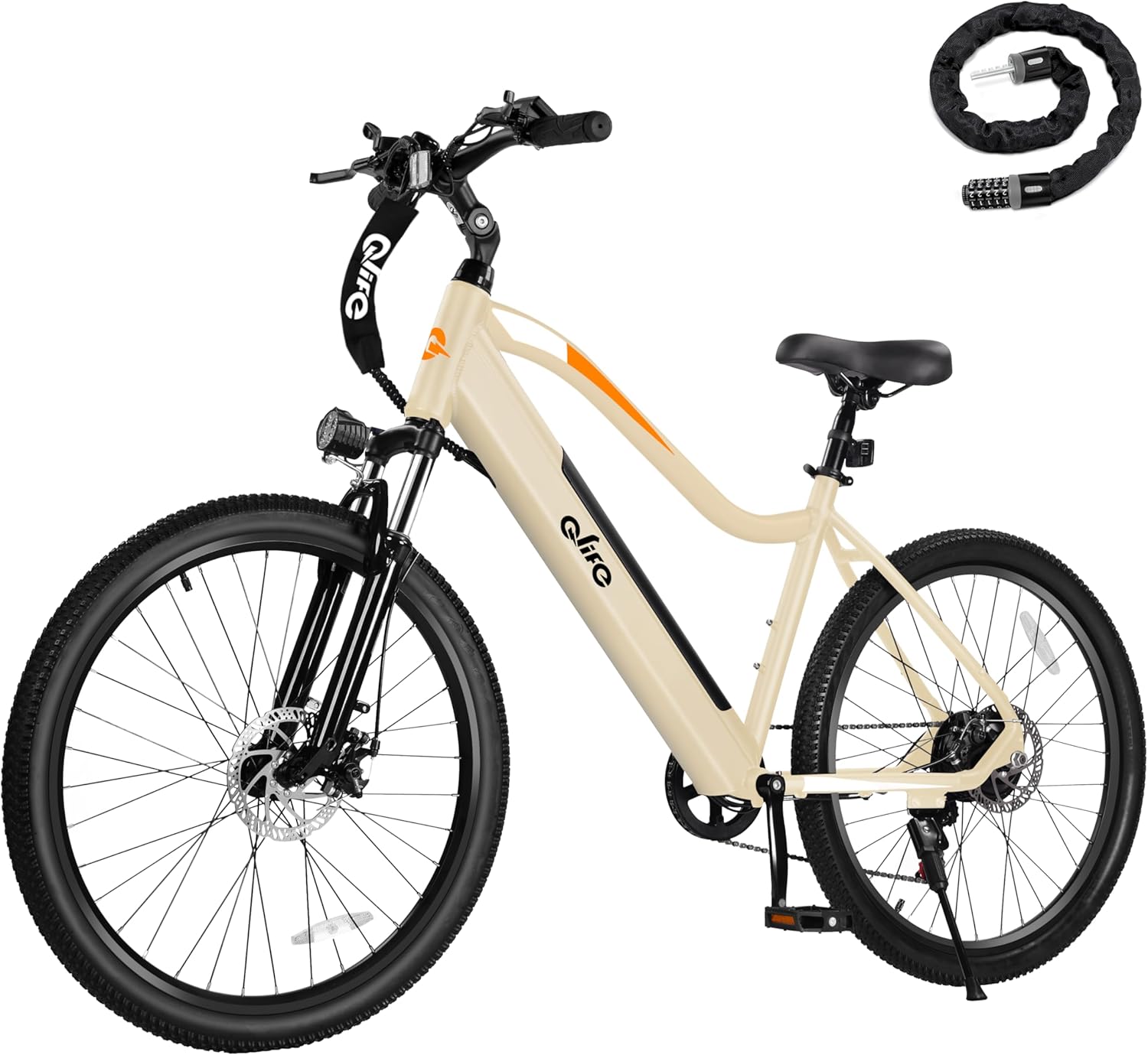 Qlife Electric Bike for Adults, 25MPH Mountain Ebike Bicycles Peak 1200W 7-Speed, 26"x2.1"Tire, 374.4Wh Removable Battery, Up to 40 Miles, Front Suspension, Cityone 48V